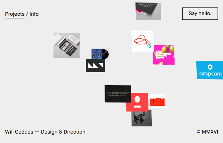 Algunos diseñadores llevan el minimalismo a su máxima expresión y desafían las convenciones sobre la apariencia que debe tener un sitio web optando por mostrar solo lo estrictamente necesario. El sitio del diseñador Mathieu Boulet se basa en un par de opciones con enlaces que conducen a sus perfiles y su información en las redes sociales.