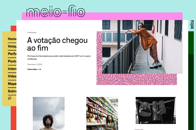 Las capas de color apiladas y escalonadas añaden profundidad y textura a un diseño gráfico de sitio web simple, tal como se observa en este moderno ejemplo del equipo de Melissa Meio-Fio, original de São Paulo.