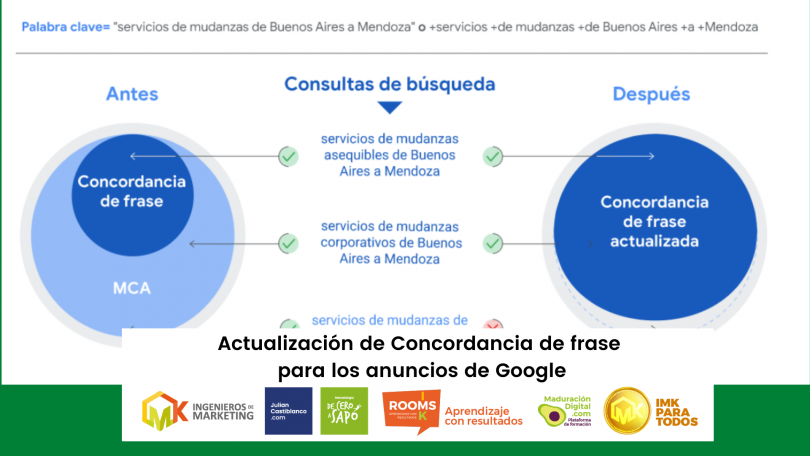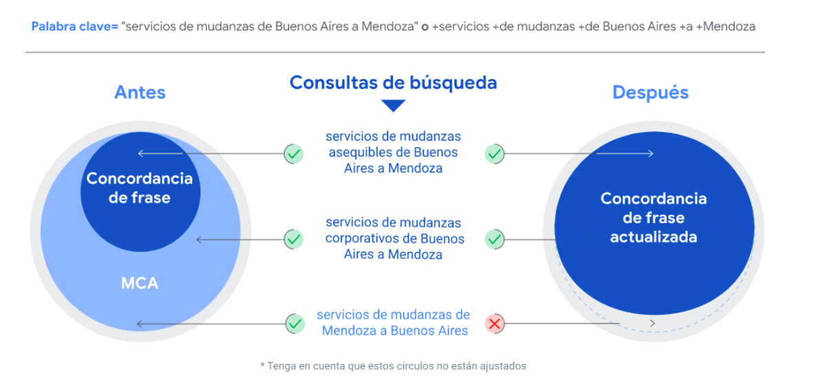 Y es por esto que a mediados de julio cuando ya esté la actualización a nivel global ya no se tendrá disponible la creación de palabras clave del MCA, pero la misma funcionalidad de concordancia estará disponible mediante la concordancia de frase.