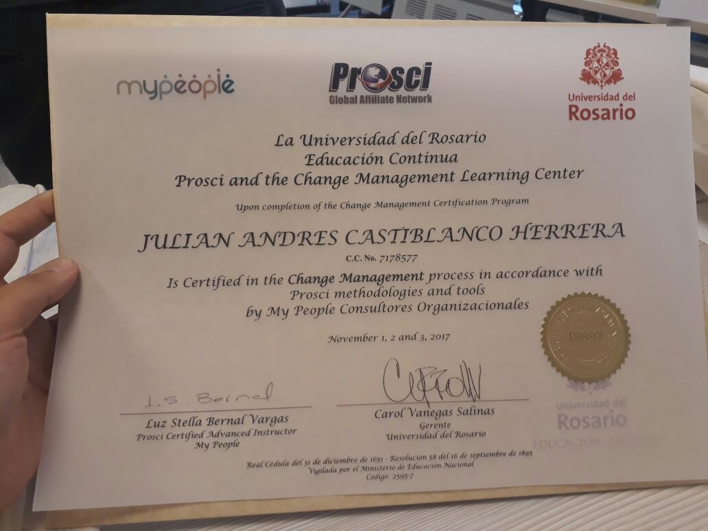 Julian Castiblanco • Marketing Digital Ahora soy certificado en Procesos de Gestión de Cambios de acuerdo con las metodologías y herramientas PROSCI 8 años agoby Ingenieros de Marketing Written by Ingenieros de Marketing Spread the love