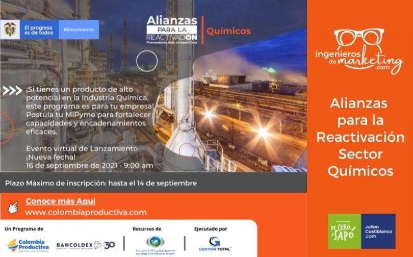 Colombia Productiva abre la convocatoria para participar en el capítulo Químicos del programa Alianzas para la Reactivación, con el que mipymes del sector Químico elevarán la productividad, sofisticación y calidad de sus productos y servicios para encontrar nuevas oportunidades de negocio con empresas compradoras nacionales e internacionales.