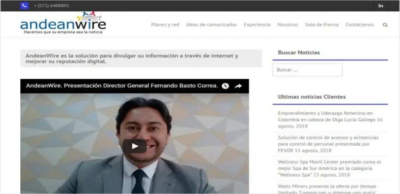 “En un comienzo, el portafolio de AndeanWire estaba basado en ofrecer comunicados de prensa como plataforma para que las empresas dieran a conocer sus productos y servicios de una manera diferente y rentable. A su vez la difusión mediática de estas noticias tomó gran relevancia para los buscadores web, a tal punto, que el rastreo de esta información permitió generar posicionamiento indirecto y reputación digital a sus clientes de manera fácil y rápida”, manifestó Fernando Basto Correa, Director General y fundador.