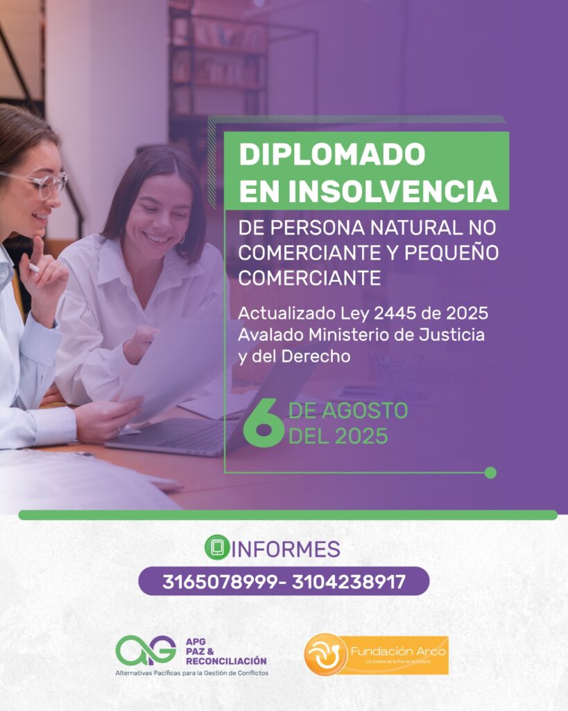 Si este tema te interesa y deseas profundizar en el desarrollo constitucional, normativo y jurisprudencial de la insolvencia de persona natural no comerciante en Colombia, te invitamos a formar parte del Diplomado en Insolvencia de Persona Natural No Comerciante y Pequeño Comerciante, ofrecido por la Fundación ARCO, avalada por la Resolución 0818 del 19 de julio de 2019, en convenio con la Fundación APG Paz y Reconciliación.