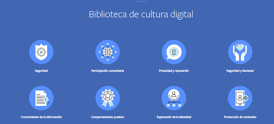 La Biblioteca de cultura digital, este proyecto está dirigido a educadores que trabajan con niños y jóvenes de 11 a 18 años. Esta plataforma incluye conversación grupales, actividades, cuestionarios y juegos que se desarrollaron teniendo en cuenta la opinión de los adolescentes, Pueden ser usadas en grupos o en individual en la clase e incluso en el hogar.
