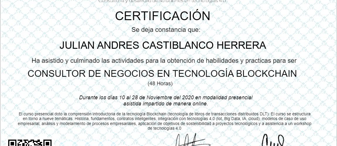 JulianCastiblanco.com certificado como Consultor de Negocios en Tecnología Blockchain