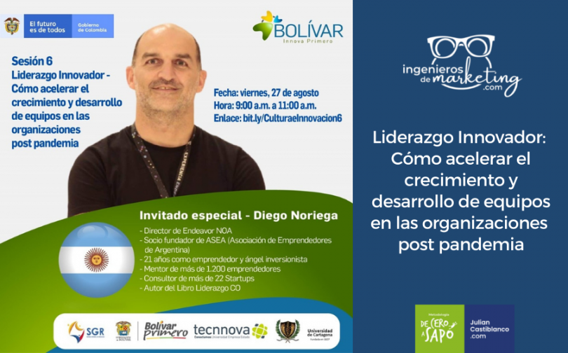 #BolivarInnovaPrimero | Conéctate este viernes 27 de agosto de 9:00 a.m. a 11:00 a.m. en la charla “Liderazgo Innovador” con Diego Noriega.
