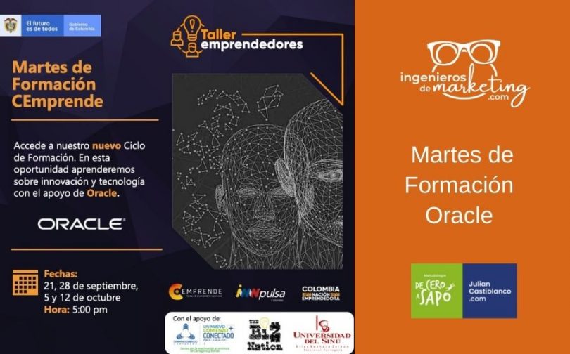 🔊 Accede con #CEmprende #iNNpulsa Colombia al Ciclo de Formación con Oracle en nuestra red física a nivel Nacional 🚀 en nuestros martes de Formación CEmprende.