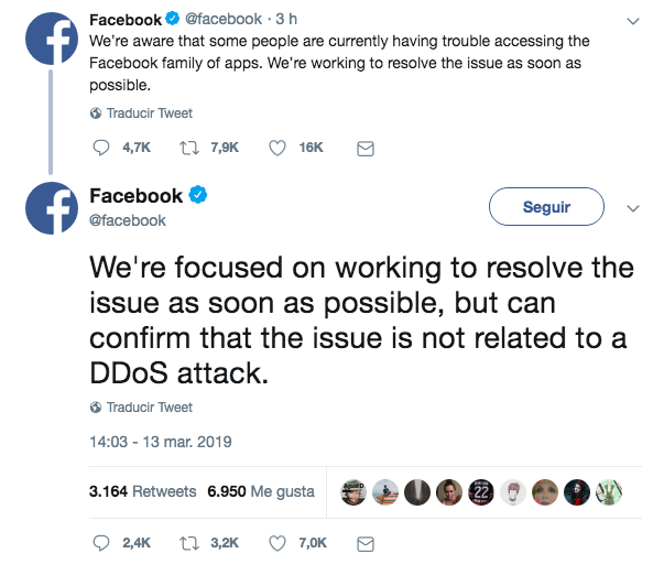 “Estamos concentrados en trabajar para resolver el asunto tan pronto como sea posible, pero podemos confirmar que no está relacionado con un ataque DDoS.”